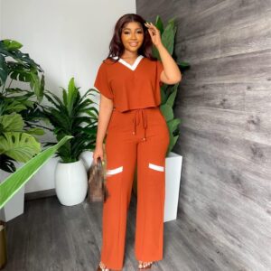 African Clothes Women 2 Piece Set T Shirt Tops and Pant Suits Set Summer Splice Fashion Office Lady Africa Clothing Outfits