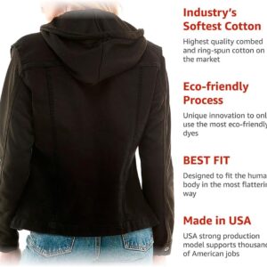 Amazing Ladies’ Denim Jacket with Fleece Hoodie – Presents for Women – Fashion Women Clothing – Medium Washed, L
