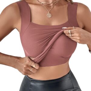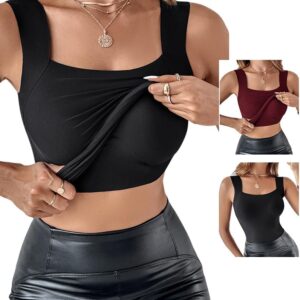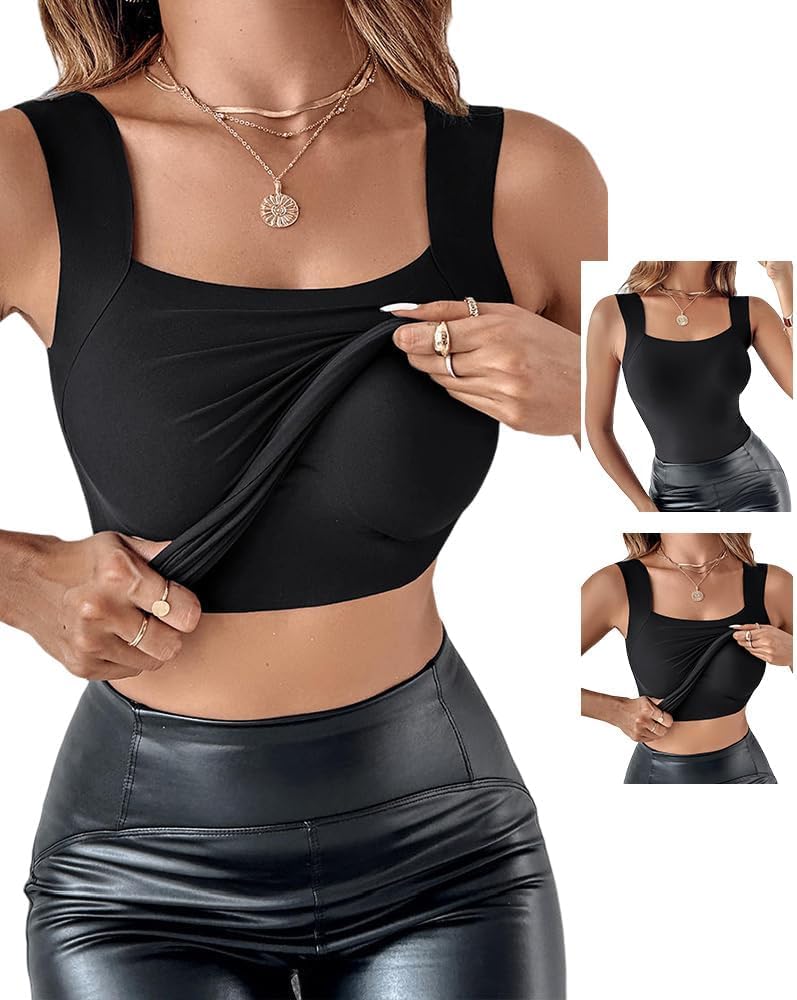 CHICME Womens U Neck Shapewear Built-in Bra Tank High Strechy Sleeveless Slim Fit Tops Camisole Workout Tops quantity