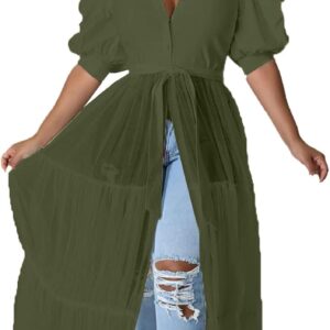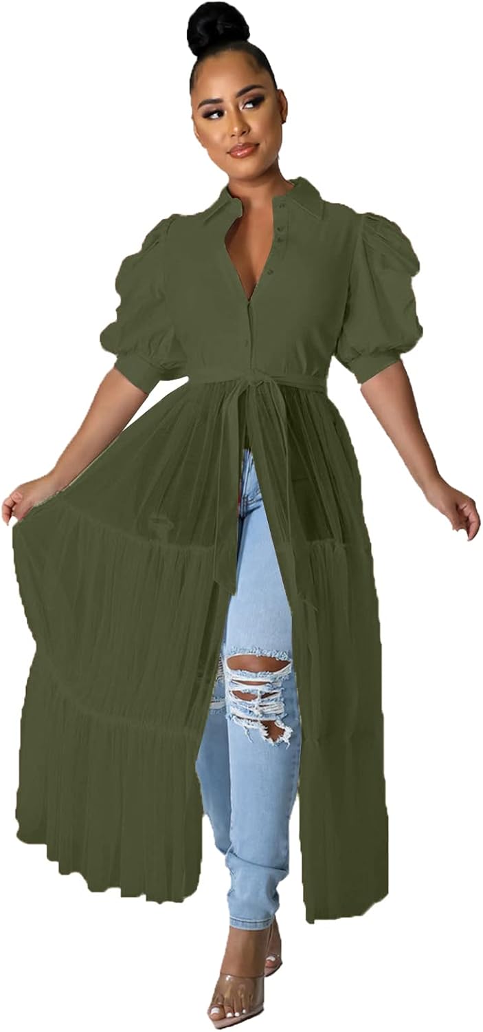 Ekaliy Women Sexy Short Sleeve Bodycon High Low Asymmetrical Ruffle Tunics Blouse Shirt Top Dress