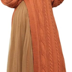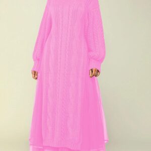KANSOON Two Piece Fall Outfits for Women Long Lantern Sleeve Slit Sweater Dress and Maxi Tulle Skirt Set with Belt quantity