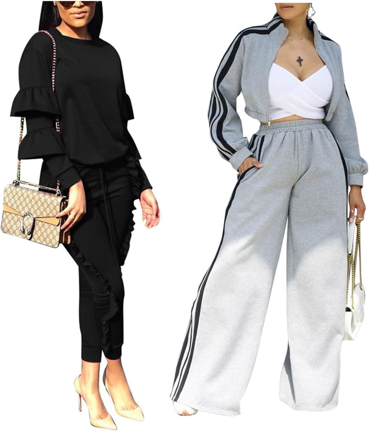 Women 2 Piece Tracksuits Outfits Long Sleeve Sweatshirt Pants Sweatsuits Set