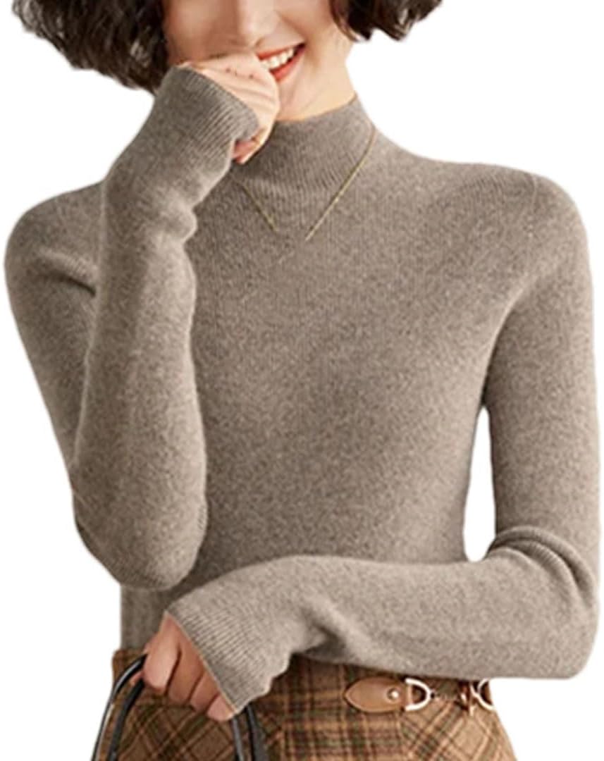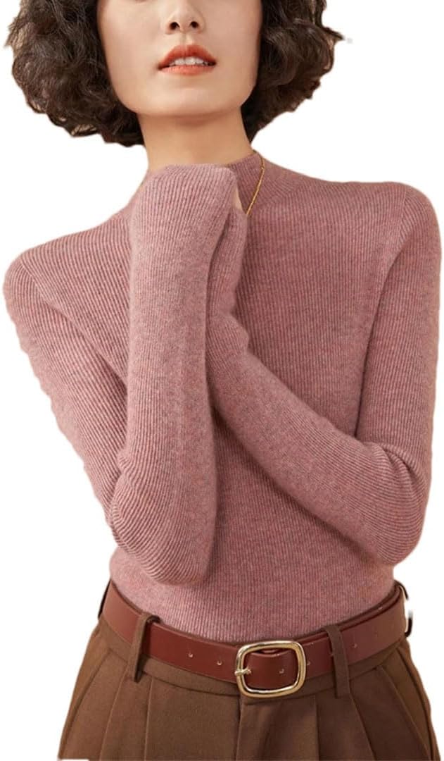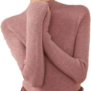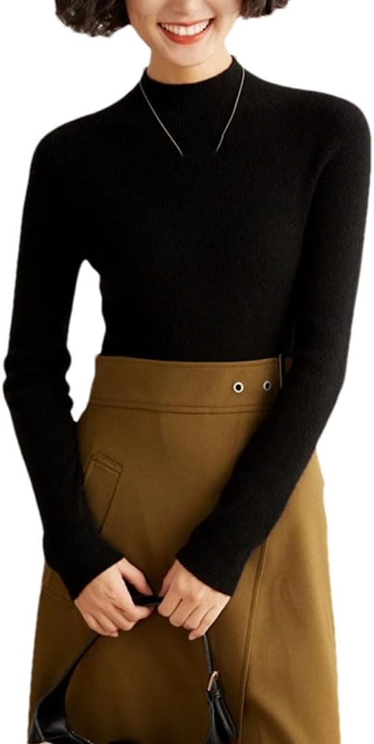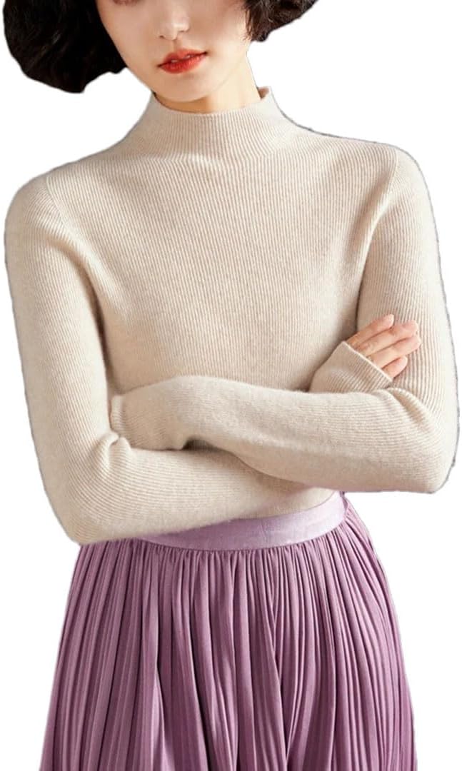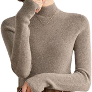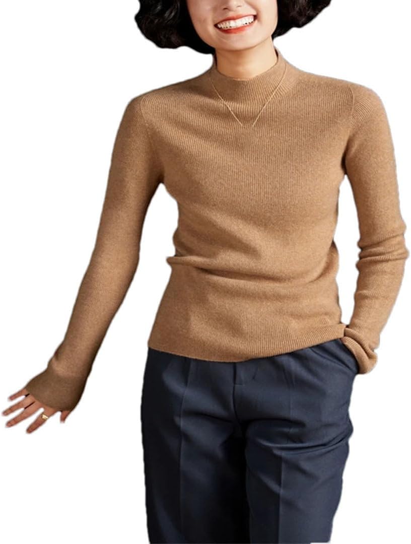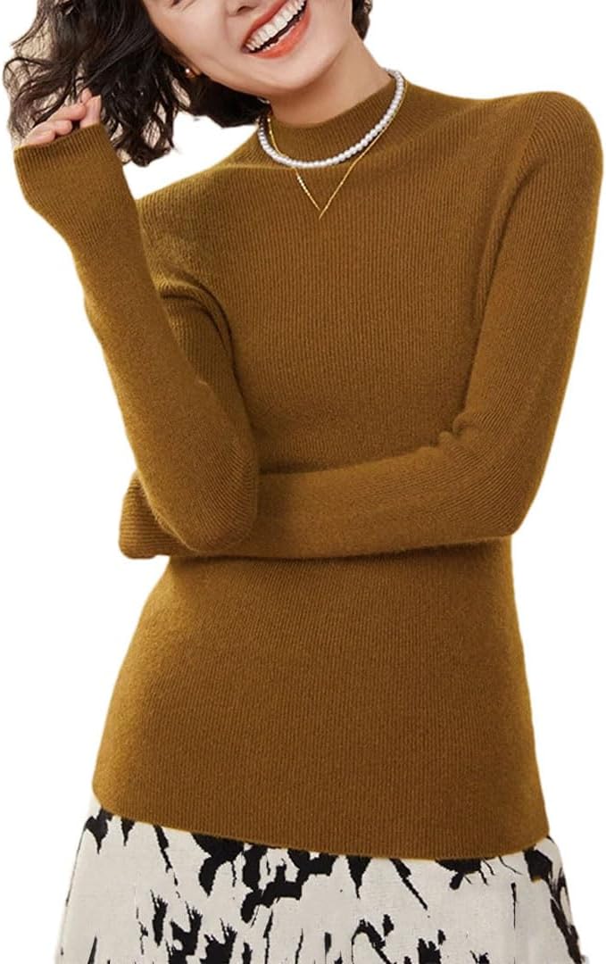 Women’s Cashmere Mock Neck Pullovers Basic Slim Long Sleeve Sweater Cashmere Clothing Bottoming Tops