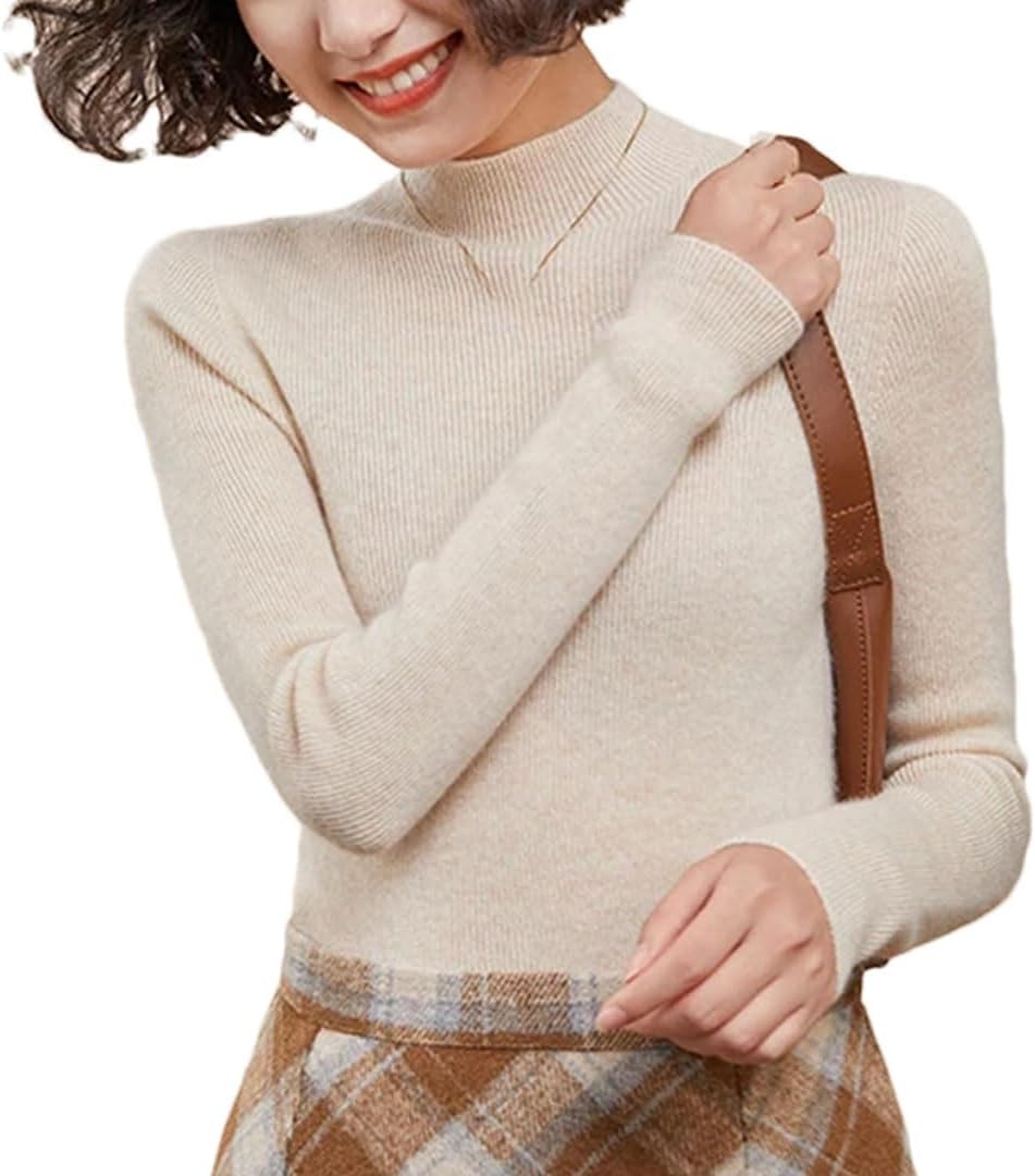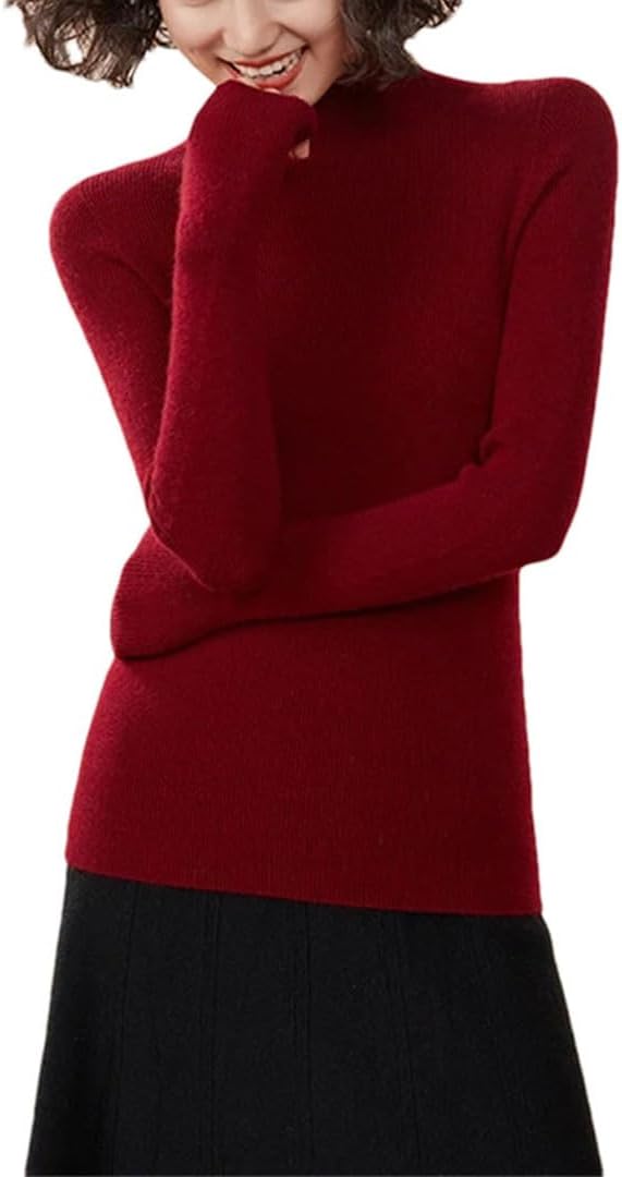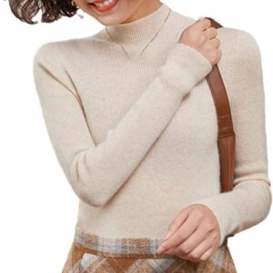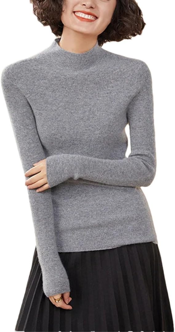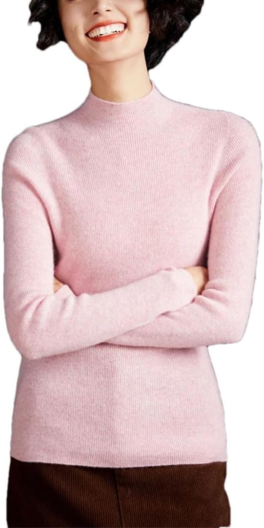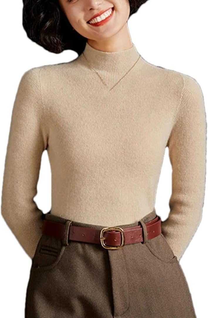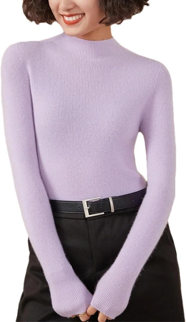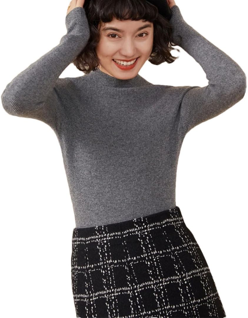Women’s Cashmere Mock Neck Pullovers Basic Slim Long Sleeve Sweater Cashmere Clothing Bottoming Tops