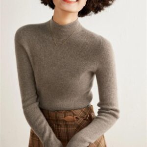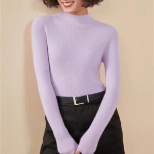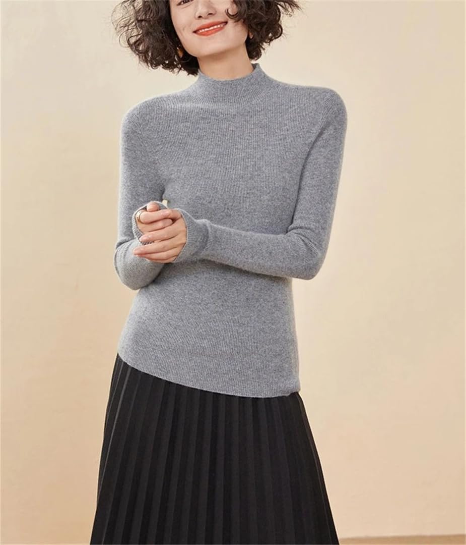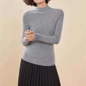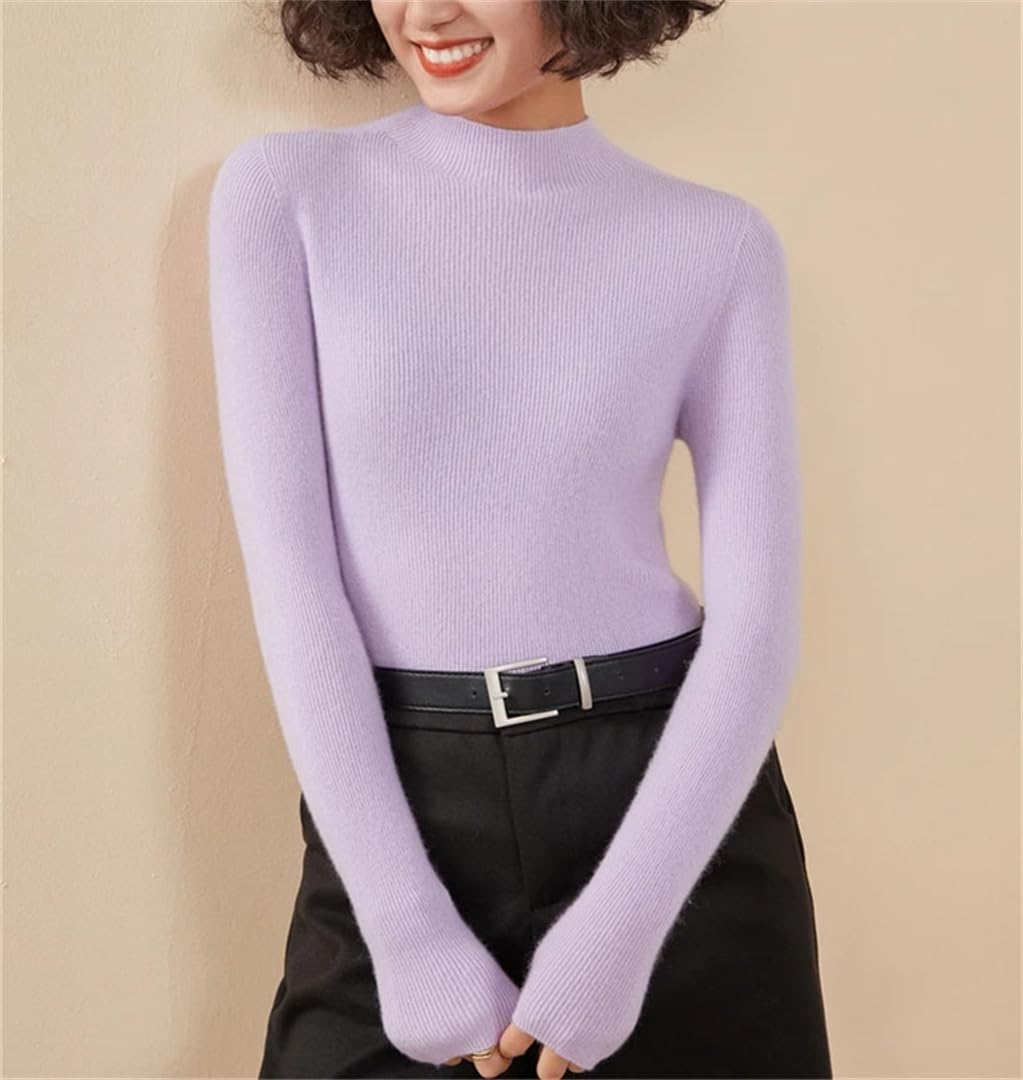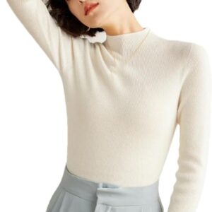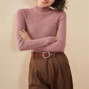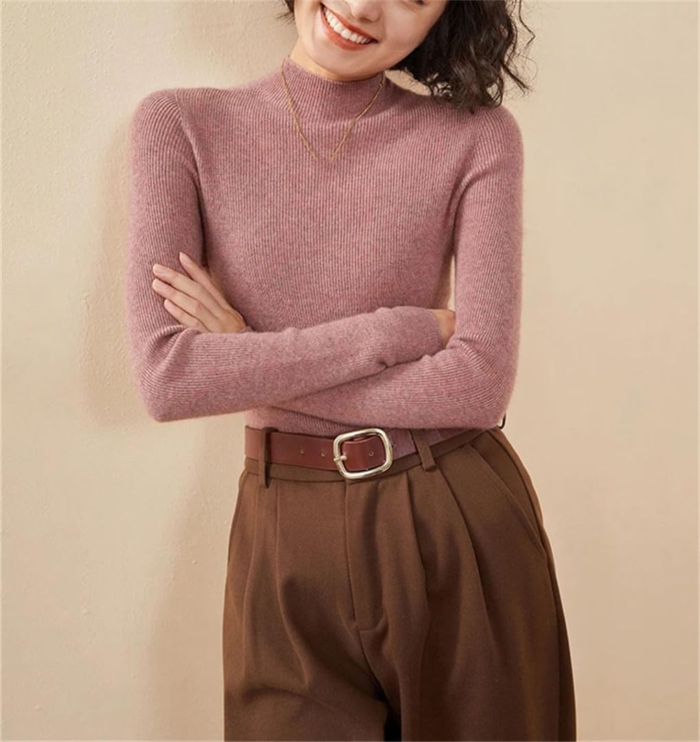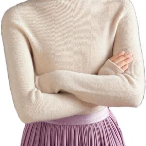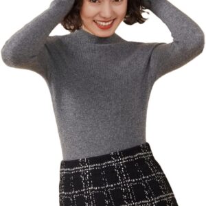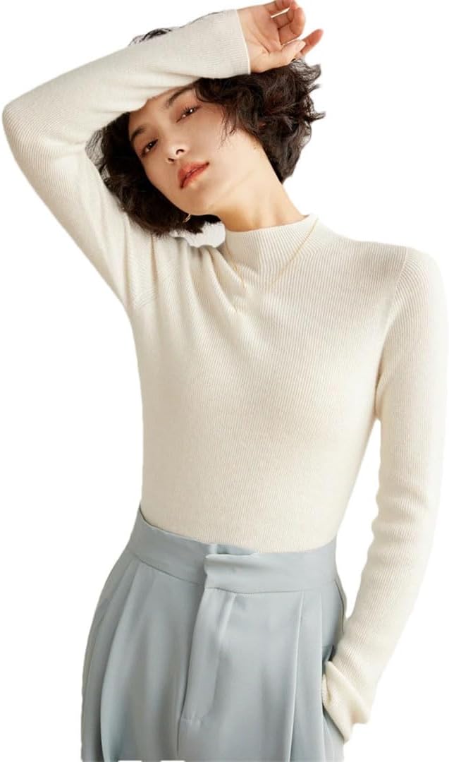 Women’s Cashmere Mock Neck Pullovers Basic Slim Long Sleeve Sweater Cashmere Clothing Bottoming Tops
